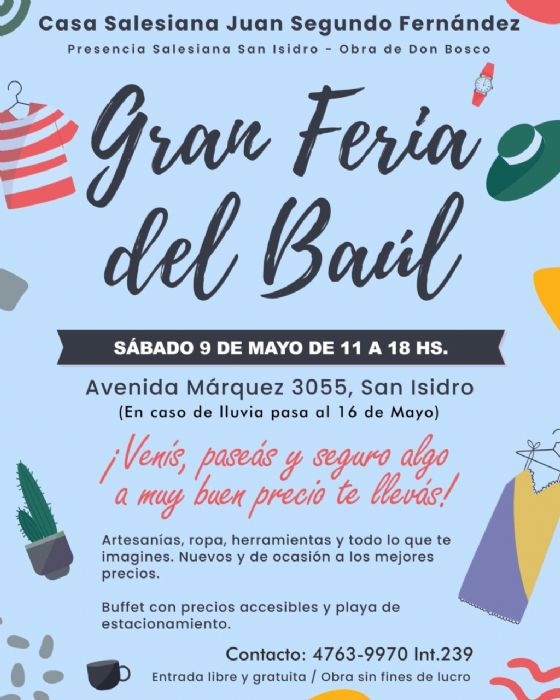 Es una feria del baúl, americana y de emprendedores. Ideal para pasear con la familia y comer algo rico en el buffet. De paso, colaborás con la escuela :D